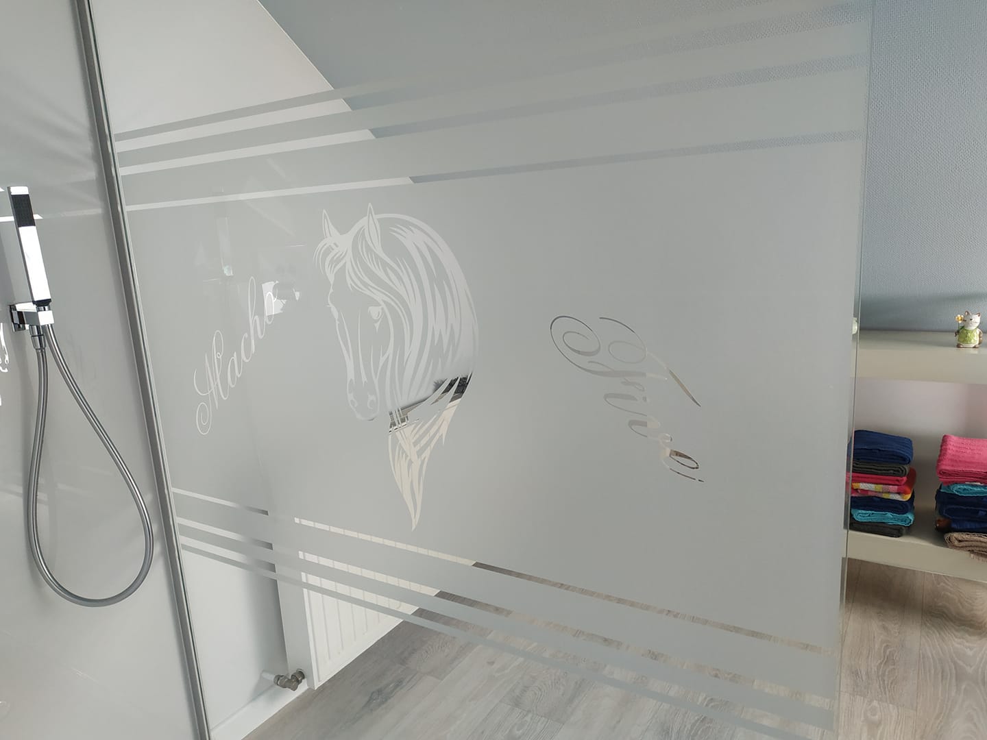 Zandstraalfolie is uiteraard ook geschikt om te kleven op douchewanden en ramen in de badkamer. Het voordeel is dat deze gemakkelijk te onderhouden is !